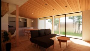 LDKと深い軒と奥庭がシームレスにつながる落ち着いた空間をぜひご体感ください。