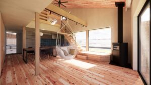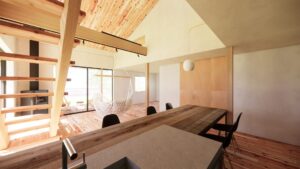 信州杉を床材と天井材に採用した木の温もり感じる空間